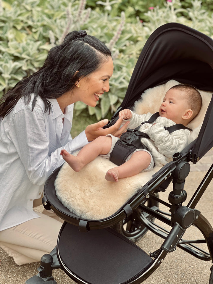 We skip the wild patterns and gimmicky fashion trends. Our sheepskin liners come in gentle, timeless neutrals designed to complement your pram beautifully for years to come. Say goodbye to fleeting fast fashion and hello to natural, lasting style.